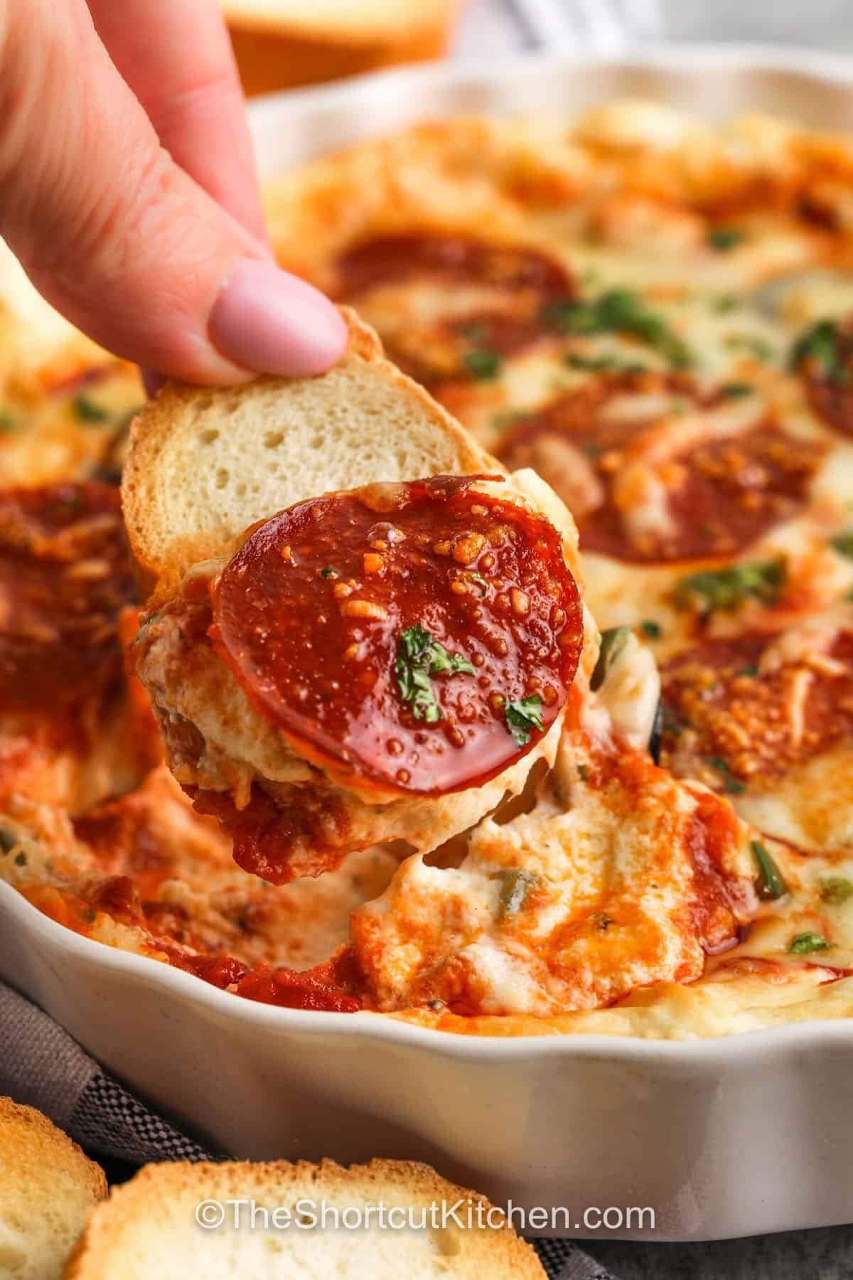 - Switch it Up: Try a Supreme Pizza-style dip and add salami, bell peppers, red onions, mushrooms, and black olives to the pepperoni.