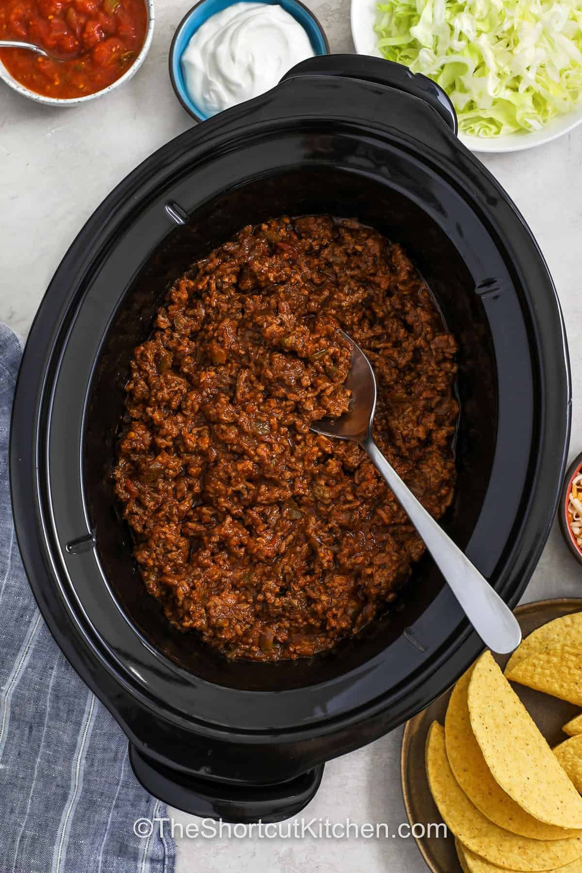 - Serve with taco shells, tortillas, nacho chips, or on a bed of lettuce — plus your favorite toppings.