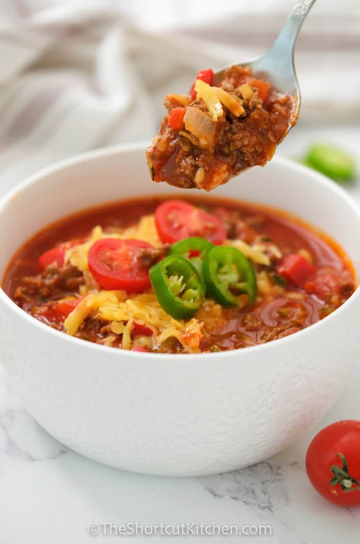 - Beef: Using 80/20 ground beef gives the best flavor, but 90/10 works too. Just add a splash more broth if the chili feels dry. Or use seasoned ground beef for extra delicious flavor.